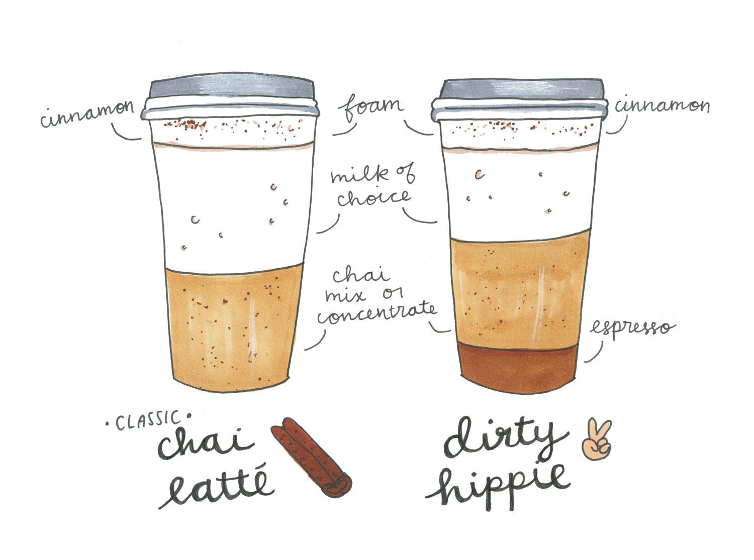 Need an extra pick-me-up? Order a “Dirty Hippie” or “Dirty Chai” for a chai latte with a shot of espresso.