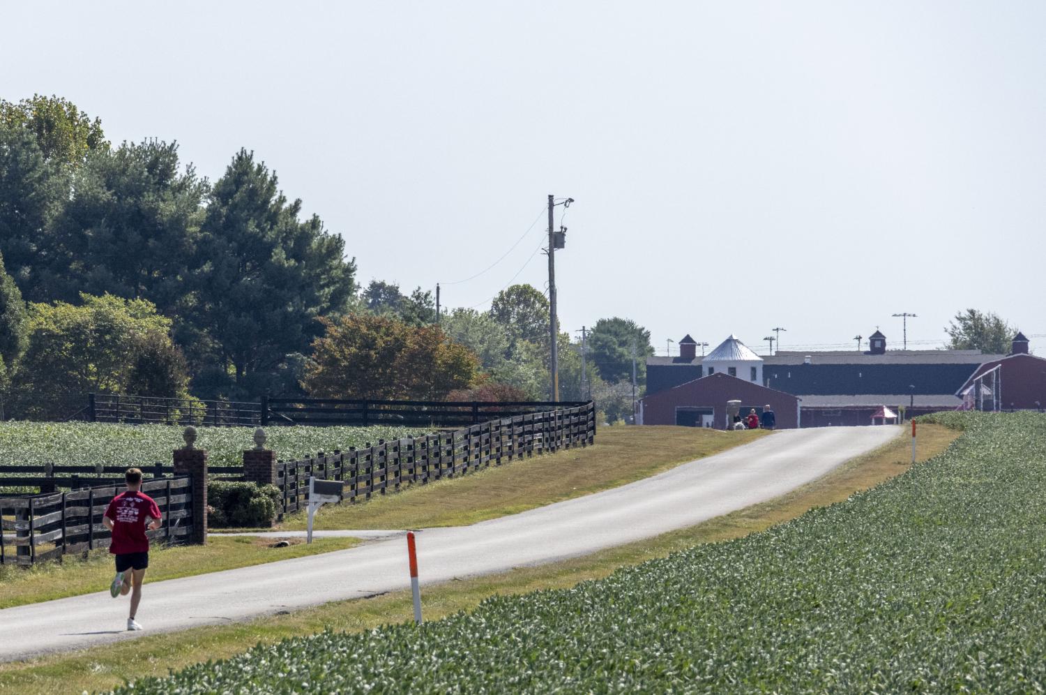 James Simmons, a former instructor in the ROTC department, prepares to run during the Eric D. Yates Memorial Run at Chaney’s Dairy Barn on Saturday, Sept. 13. “This is important to me and my family,” Simmons said. He said he ran the entire race with an army-style pack “to just make it suck a little bit more.” (Photo by Megan Geisler)Rex Boblett stretches before he begins the Eric D. Yates Memorial Run at Chaney’s Dairy Barn on Saturday, Sept. 13.“It’s good to show support for these brave men and women who are taking up the sword and defending our freedom,” Boblett said. “Mr. Yates is an inspiration to all of us, especially the younger generation.” (Photo by Megan Geisler)Brandon Smith and his son Joseph Smith run during the Eric D. Yates Memorial Run at Chaney’s Dairy Barn on Saturday, Sept. 13. This is Joseph’s first 5k run. “It’s part of our culture,” Brandon said. “It’s also part of who we are, and we take care of each other and support each other. We want to take care and honor the Yates family.” (Photo by Megan Geisler)