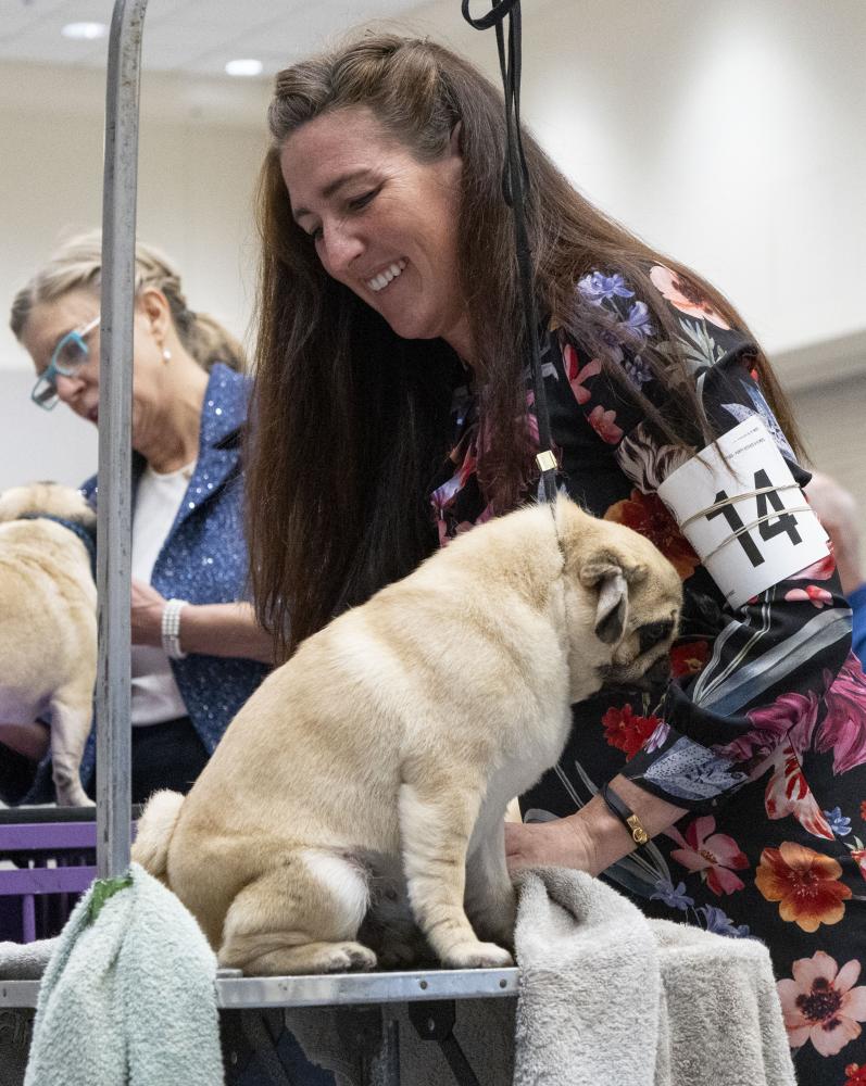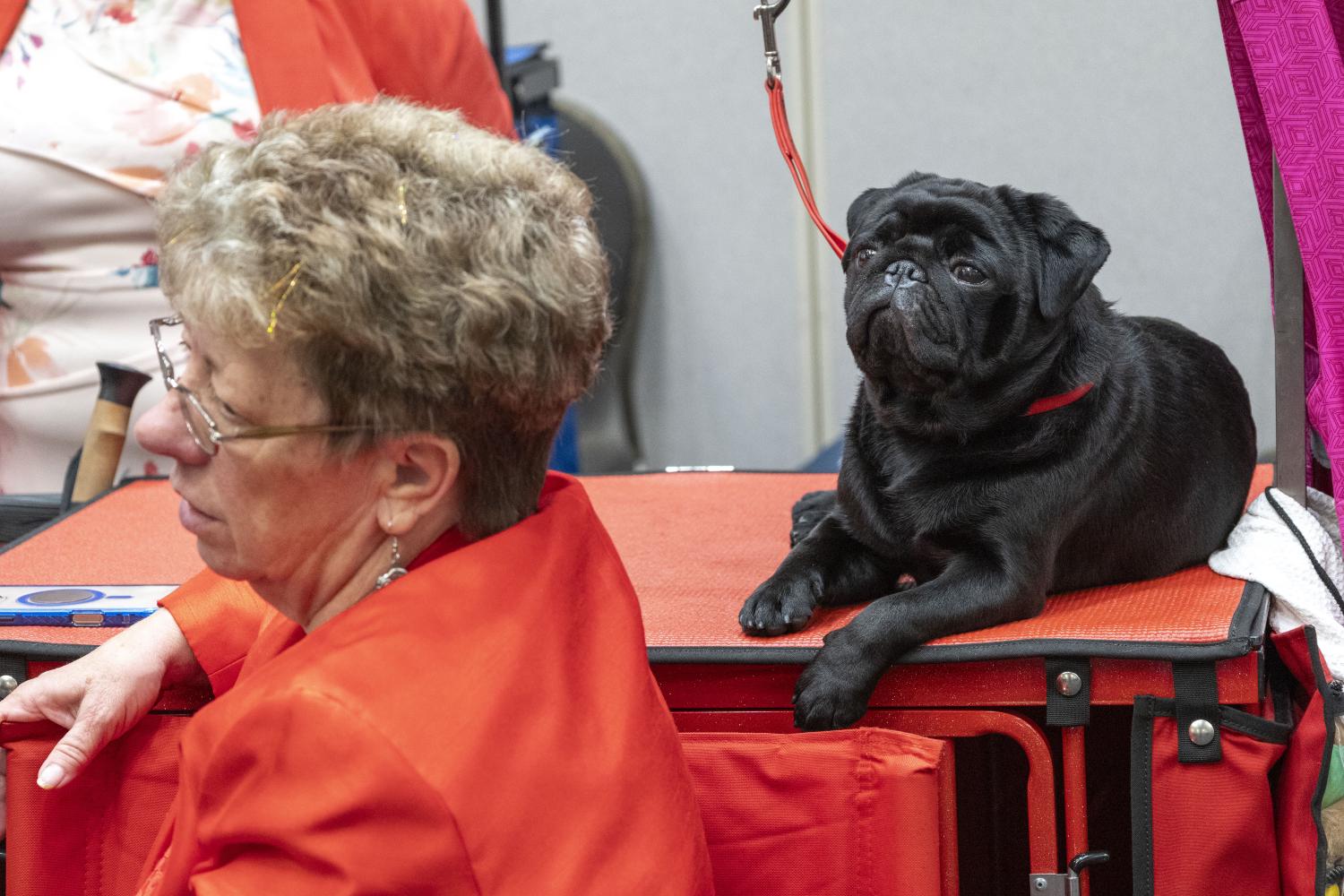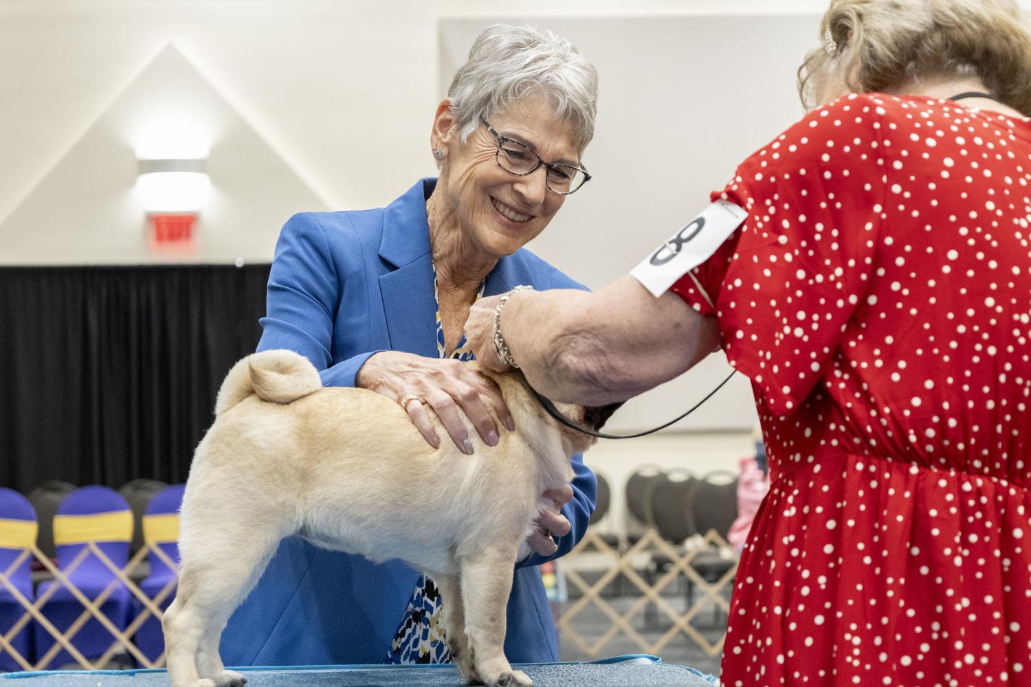 Pugs line up to compete during the 2025 Pug Dog Club of America National Specialty Show. Over 230 pugs competed. The show takes place in the Sloan Convention Center in Bowling Green from Monday, Oct. 6, to Saturday, Oct. 11. (Photo by Carlee Hite)An owner waits with her pug on the sidelines of the completion at the 2025 Pug Dog Club of America National Specialty Show. The show takes place in the Sloan Convention Center in Bowling Green from Monday, Oct. 6, to Saturday, Oct. 11. (Photo by Carlee Hite)Ribbons are on display at the 2025 Pug Dog Club of America National Specialty Show takes place at the Sloan Convention Center in Bowling Green from Monday, Oct. 6, to Saturday, Oct. 11. (Photo by Carlee Hite)Cynthia Cool, one of the judges for the 2025 Pug Dog Club of America National Specialty Show, talks with a competitor while judging their pug. The show takes place in the Sloan Convention Center in Bowling Green from Monday, Oct. 6, to Saturday, Oct. 11. (Photo by Carlee Hite)Four pugs wait in their crates on the sidelines of the 2025 Pug Dog Club of America National Specialty Show. The show takes place in the Sloan Convention Center in Bowling Green from Monday, Oct. 6, to Saturday, Oct. 11. (Photo by Carlee Hite)Courtney Penner (left) cheers for Carole Walker (right) and Hyclass Gettin’ Figgy Wit It Sito. Their pug is competing in the 4-6 Month Beginner Puppy Category. Penner has been showing dogs since she was four years old. Walker has been showing pugs since 2000. Both Penner and Walker traveled from Canada for the 2025 Pug Dog Club of America National Specialty Show. The show takes place at the Sloan Convention Center in Bowling Green from Monday, Oct. 6, to Saturday, Oct. 11. (Photo by Carlee Hite)Renee Rosamilia’s pug, Tyler, jumps inside a gate at Sloan Convention Center on Tuesday, Oct. 7. They traveled from Florida to compete in the 2025 Pug Dog Club of America National Specialty Show. Rosamilia works as a professional handler. (Photo by Carlee Hite)Barbara Johnson (left) and Dee Bardin (right) groom Cadbury for his competition. Johnson and Bardin both traveled from North Carolina to compete in the 2025 Pug Dog Club of America National Specialty Show. The show takes place at the Sloan Convention Center in Bowling Green from Monday, Oct. 6, to Saturday, Oct. 11. (Photo by Carlee Hite)Grooming materials and a fourth-place ribbon lie on a table in the grooming room of the 2025 Pug Dog Club of America National Specialty Show. The show takes place in the Sloan Convention Center in Bowling Green from Monday, Oct. 6, to Saturday, Oct. 11. (Photo by Carlee Hite)Caryl Ann Baxter holds Roxy, a 13-month-old pug, as she awaits her turn with the judge during the 2025 Pug Dog Club of America National Specialty Show. The show takes place in the Sloan Convention Center in Bowling Green from Monday, Oct. 6, to Saturday, Oct. 11. Baxter has shown pugs for 15 years and has a book about pugs titled “Mimi: When I Get Big.” (Photo by Carlee Hite)Linda Wright prepares Romeo, a six-month-old pug, for his competition at the 2025 Pug Dog Club of America National Specialty Show. Wright, a Michigan native, has been showing pugs since 1989. (Photo by Carlee Hite)A pug awaits judging at the 2025 Pug Dog Club of America National Specialty Show. The show takes place in the Sloan Convention Center in Bowling Green from Monday, Oct. 6, to Saturday, Oct. 11. (Photo by Carlee Hite)Handler Stacy Weatherford grooms her fawn pug bitch for competition at the 2025 Pug Dog Club of America National Specialty Show. The show takes place in the Sloan Convention Center in Bowling Green from Monday, Oct. 6, to Saturday, Oct. 11. (Photo by Carlee Hite)Hannah Ogle (9) lifts Roxy as she prepares for her first-ever pug show. Ogle has grown up showing whippets and corgis, but this was her first pug competition. Ogle was the youngest competitor in the junior category at the 2025 Pug Dog Club of America National Specialty Show. The show takes place at the Sloan Convention Center in Bowling Green from Monday, Oct. 6, to Saturday, Oct. 11. (Photo by Carlee Hite)Andrew Sullivan poses with his pug Toby. The duo won best junior handler on Tuesday, Oct. 7, at the 2025 Pug Dog Club of America National Specialty Show. The event takes place at the Sloan Convention Center in Bowling Green. Sullivan traveled from upstate New York to compete in the show. (Photo by Carlee Hite)Andrew Sullivan shows his pug at the Sloan Convention Center in Bowling Green. Sullivan and his pugs traveled from New York for the 2025 Pug Dog Club of America National Specialty Show. (Photo by Carlee Hite)A pug awaits their competition at the 2025 Pug Dog Club of America National Specialty Show. The show takes place in the Sloan Convention Center in Bowling Green from Monday, Oct. 6, to Saturday, Oct. 11. (Photo by Carlee Hite)Grooming brushes and other materials lie in a container in the grooming room of the 2025 Pug Dog Club of America National Specialty Show. The show takes place in the Sloan Convention Center in Bowling Green from Monday, Oct. 6, to Saturday, Oct. 11. (Photo by Carlee Hite)