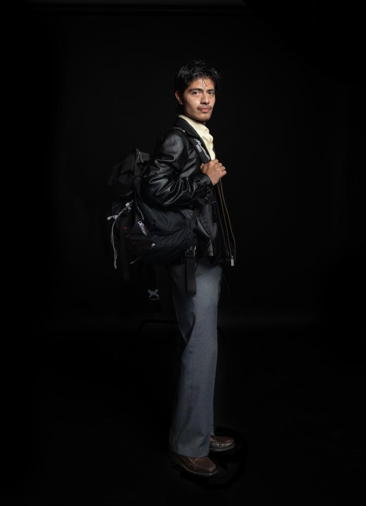 BOTTOM: Leonardo Vazquez’s daily bag lies in Jody Richards Hall. (Photo by Bradi Hawkins)