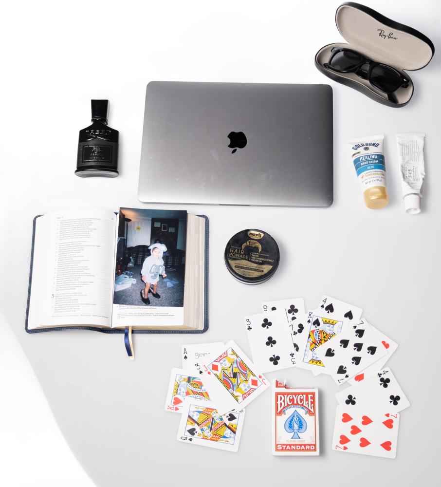 He said that he also likes to carry a bottle of cologne with him. Currently, he has one from House of Creed in his bag. He said he not only enjoys the sophisticated and fresh scent, but also being able to recommend scents to his friends.