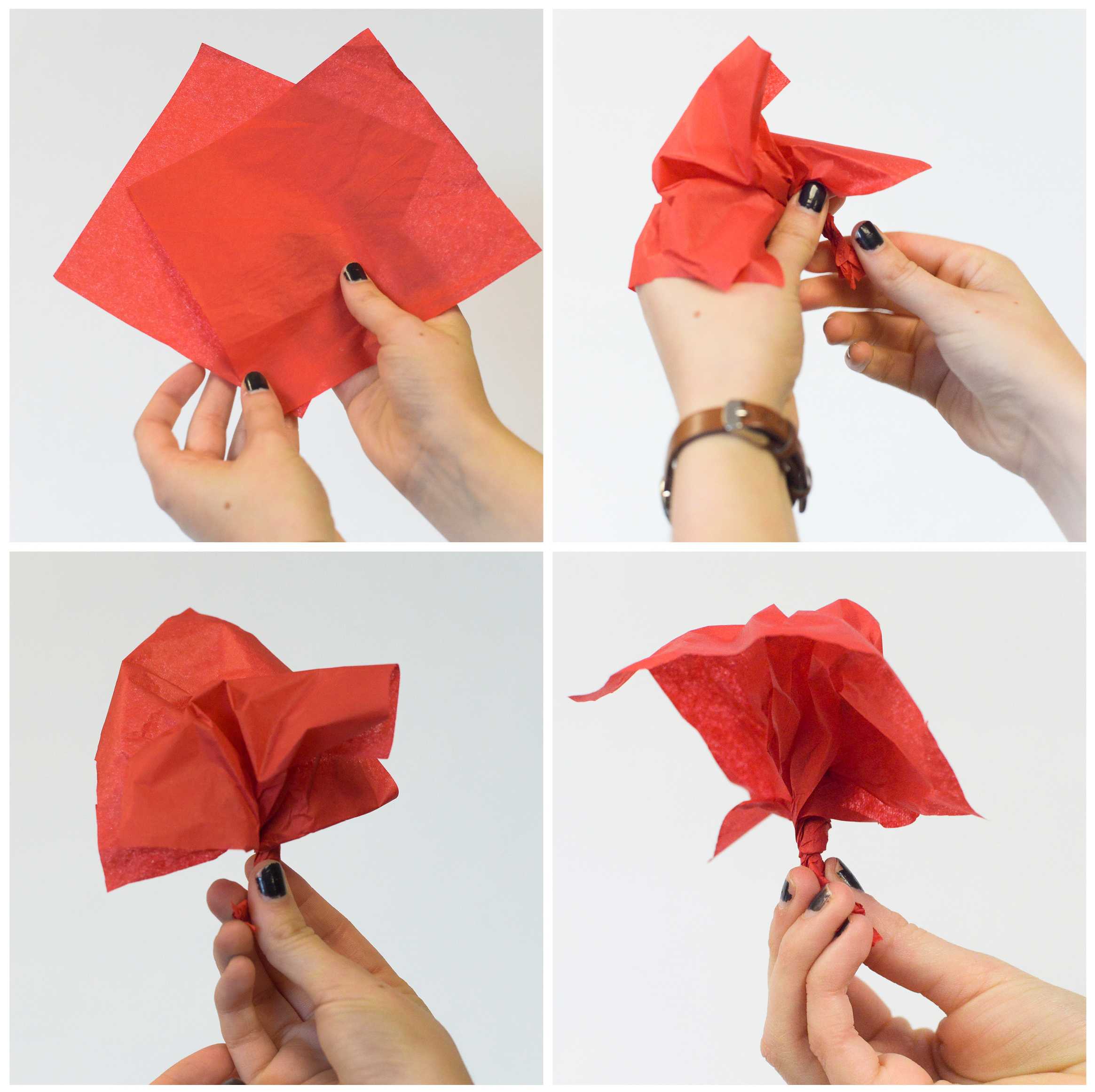 Step Two: Twist the paper together until you’ve got a stem that’s a little over an inch long.
