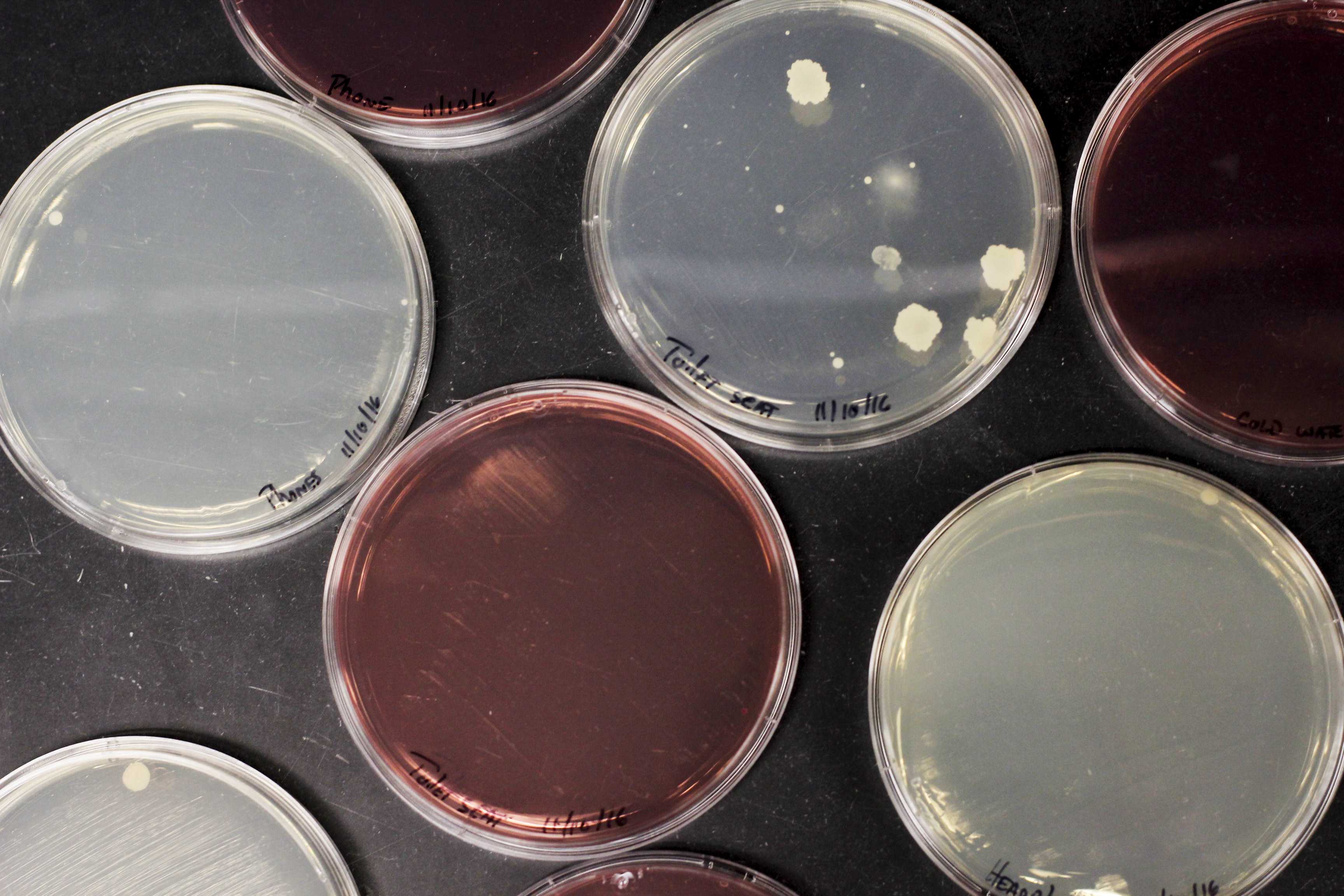 After swabbing a cell phone, a pair of headphones, a sink knob, a toilet seat, a door knob and an elevator button, we ran the swabs over two types of culture mediums.The first medium was a general growth medium called LB, or Luria-Bertani broth, which allows multiple types of bacteria to grow together. The second medium was a differential medium, meaning it inhibits the growth of all bacteria except one type. In this case, this culture only allowed for the growth of fecal bacteria.
