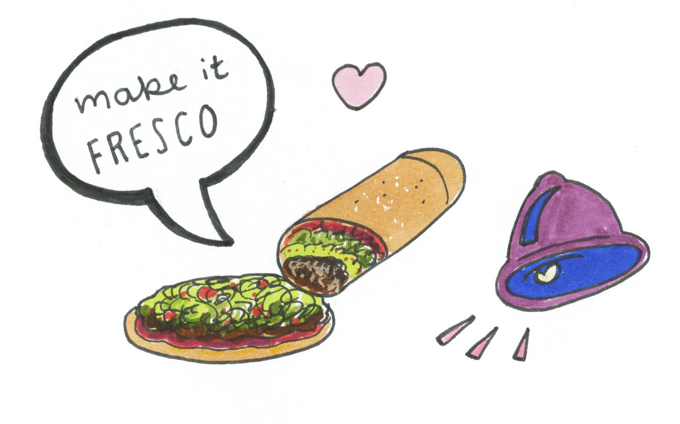 In fact, most things at Taco Bell can be ordered vegan by simply replacing the meat with black beans and ordering your meal options “fresco style” — this means replacing the cheese and sour cream with pico de gallo. My favorites are the fresco-style seven layer burrito, fresco-style crunchwrap supreme and the fresco-style tostada with no chipotle sauce. Be sure to load it all up with fire sauce.