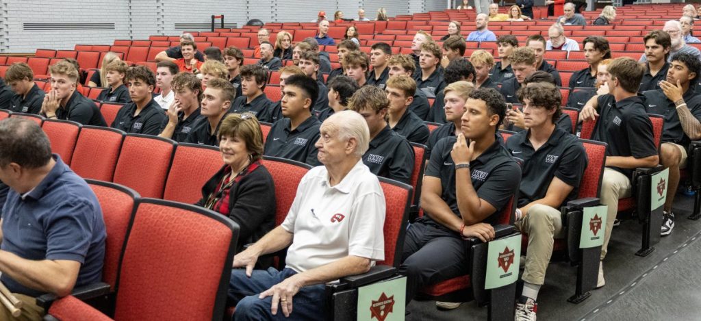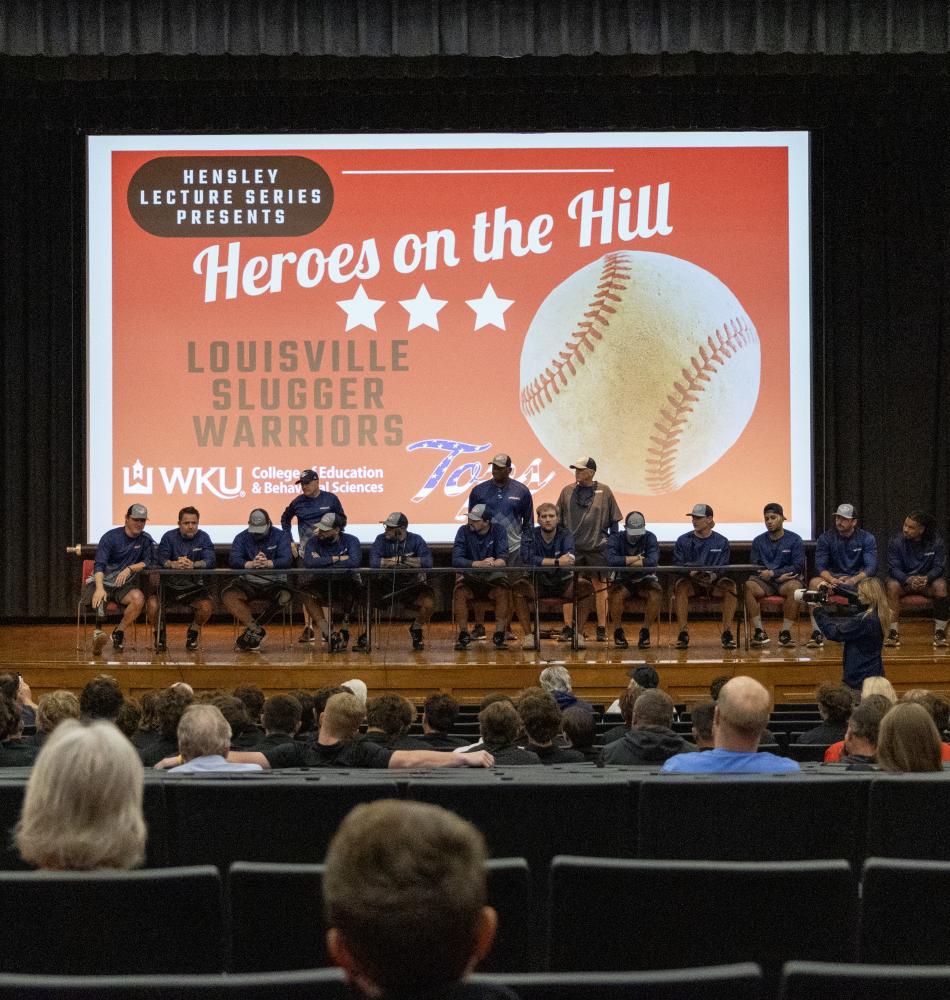 The visit began with a screening of their documentary “Curveballs… Secrets to the Game of Life” on the evening of Friday, Oct. 10, as a part of the Mary E. Hensley Lecture Series. Corinne Murphy, dean of the College of Education and Behavioral Sciences, said that the event was a collaborative effort between WKU Hilltoppers Baseball, WKU ROTC and WKU Military Student Services.