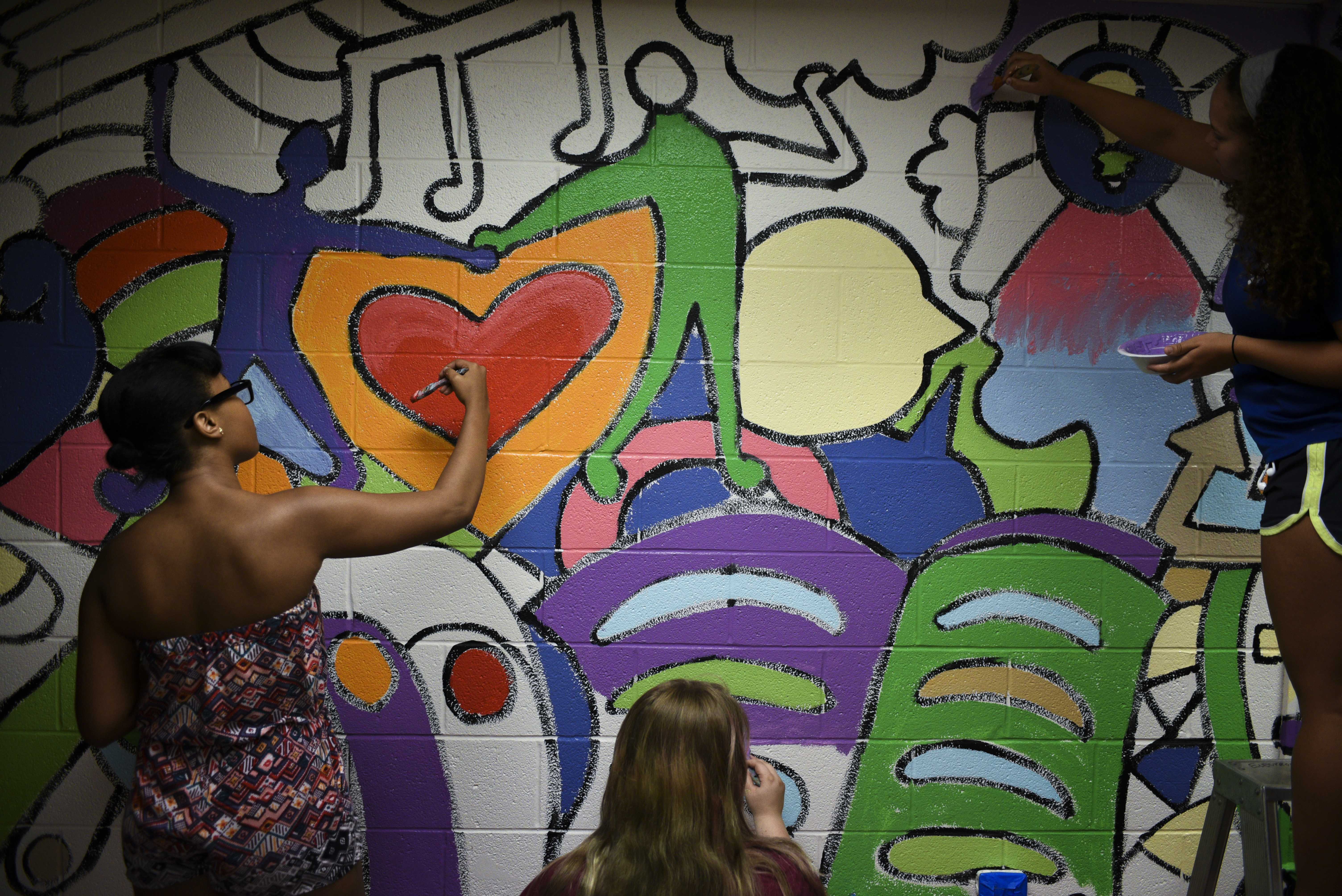 A: Well, this event today was really just our kickoff event for students because we wanted students to feel some level of ownership over the new program, and with it being a combined/new program, a mural seemed like a really great way for students to create something that’s lasting in this space that serves to inspire others.And so, as we are developing our programs, it is also really nice to hear from students in regard to how they imagined making an impact on the world. We want to build our programs in a way that accommodates the vision of the students, as well. And I think it was really just a laid-back, fun activity to not only build awareness, but help students feel connected to the new Center.